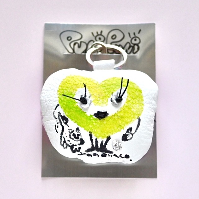 チャームキーホルダーです。 きみどりーないもむしくんです。 ちびぷにサイズ。 ぷにぷにして癒されてください。 【鹿革について】 環境に配慮した鹿革にひとつひとつ絵を付けた 一点もののチャームです 日本全国で一年間に60万匹もの鹿が"駆除"されてしまっているそうです。そのうち食肉になるものでもほんのわずか。やあちゃこではその鹿さんを大切にまた使用させて頂いております。 また、鞣す際に金属でコーティングしてないので工業排水も出しておらず環境に配慮されております。 【素材】 鹿革 中綿 落ちない絵の具 【サイズ】 ちびぷに 幅約6,5cm 長さ約3cm 厚さ約3cm 【鹿革製品のお手入れについて】 もともとは動物さんの皮膚です。長くお使い頂けると幸いでございます。 ・おろしたての革は水に弱いので出来るだけ雨の日の使用は避けて下さい。 ・定期的に革用の防水スプレーをお掛けして下さい。 ・ホワイトからビンテージ調アイボリーへの色の変化もお楽しみください。