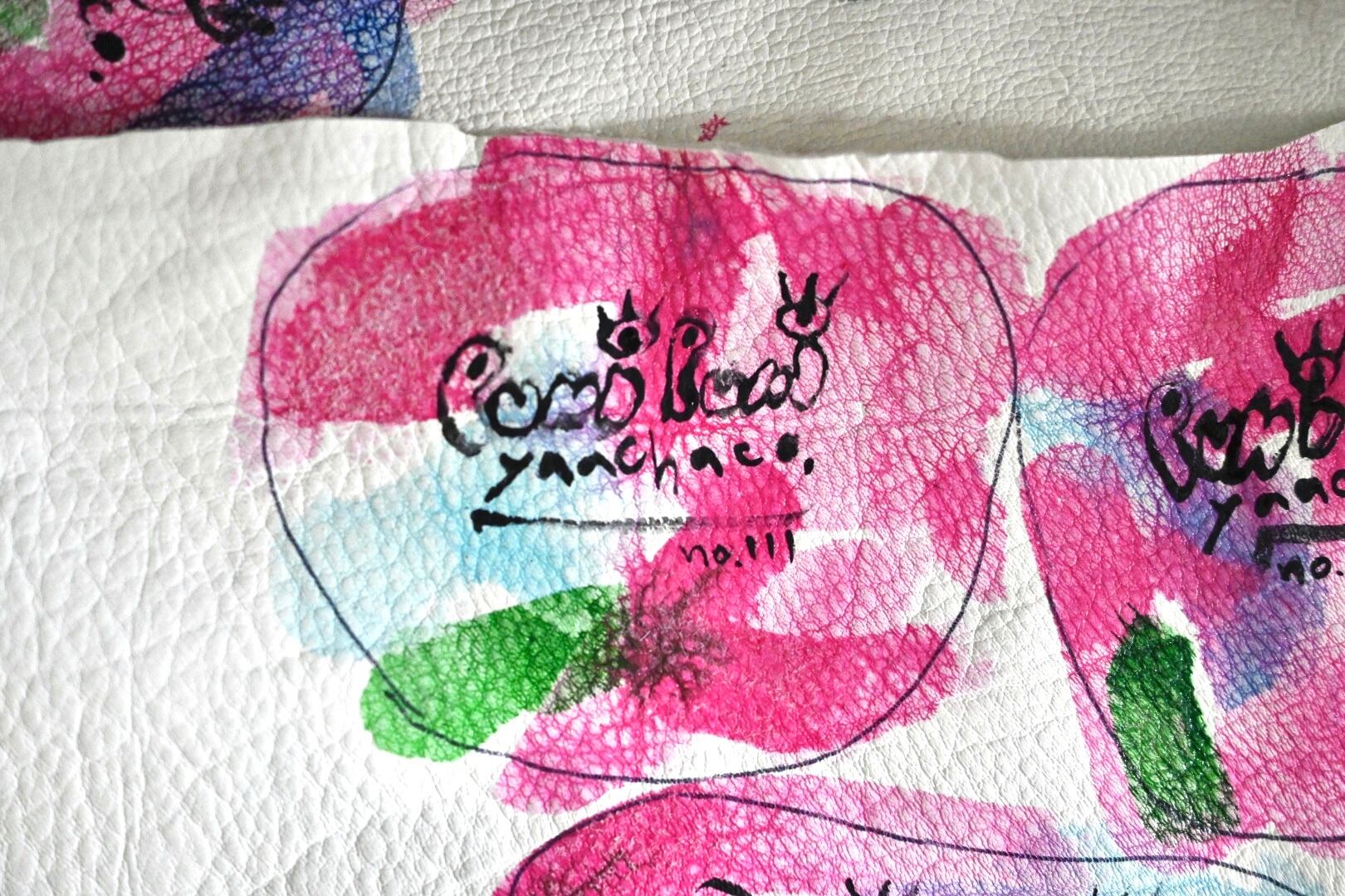 環境に配慮した鹿革にひとつひとつ絵を付けた